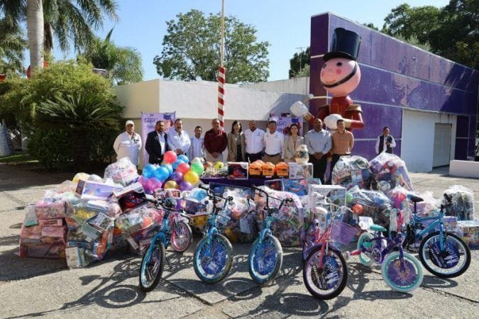 El evento se llevó a cabo en el estacionamiento del Sistema DIF Tamaulipas, donde Patricia Eugenia Lara Ayala, directora general del Sistema DIF Tamaulipas, recibió los juguetes en representación del organismo estatal, que preside la doctora María de Villarreal.